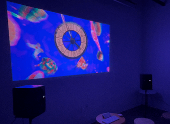 Overwhelming and disorienting, yet immersive and meditative, this is a work of poetic chaos that examines the capacity for spatialized sound to elicit tactile and visceral sensory responses along with the magnetic quality that audio has to capture and redirect the ear’s attention. Presenting audio fragments in tandem with correlated images in combinations that are seemingly arbitrary, but subconsciously sensical because they just felt right, this piece strives to rationalize the ridiculous and scrutinize the relationship between sound and image. How do the audio and visual complement or contradict each other? What types of explanations, memories, narratives are being evoked? How does moving to a different spatial orientation impact the sensory experience?